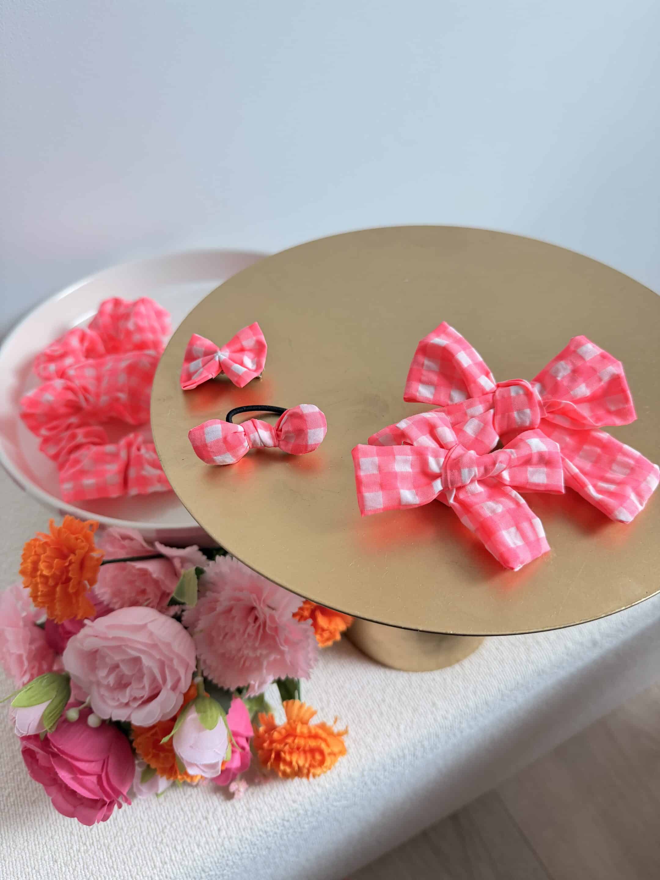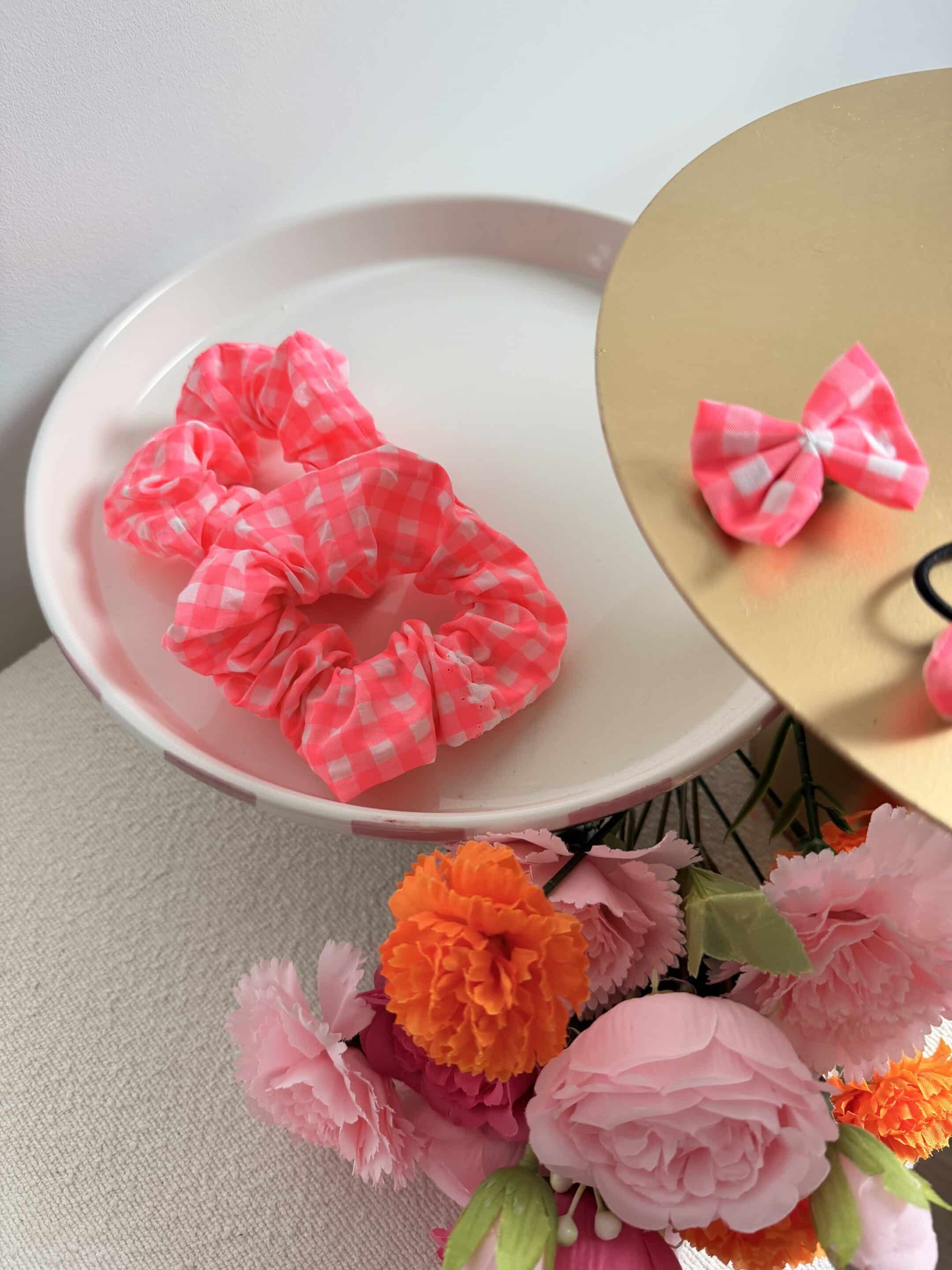 Barrette, vichy rose fluo