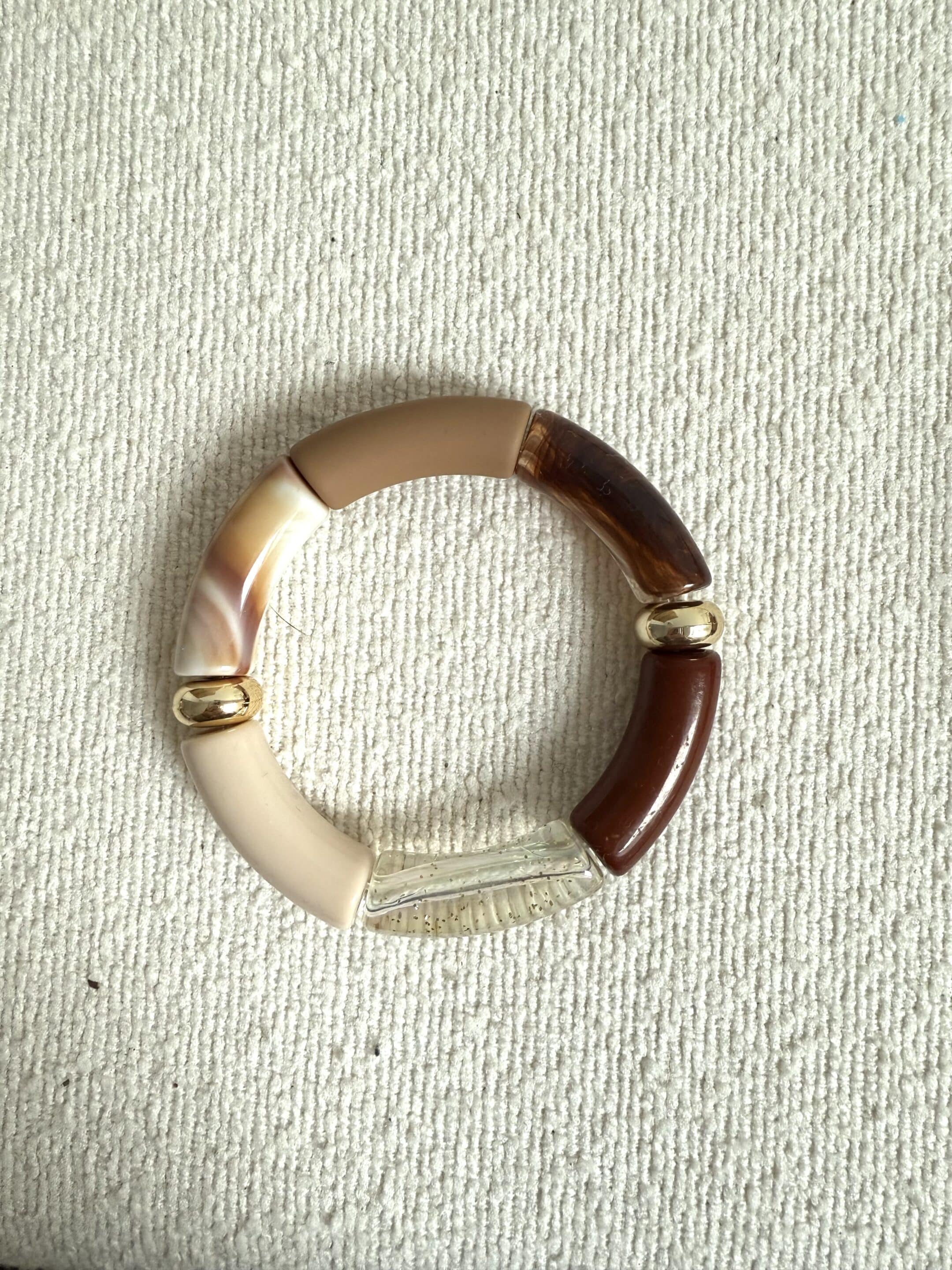 Bracelet composé de 6 perles tubulaires en acrylique et 2 inter-perle.