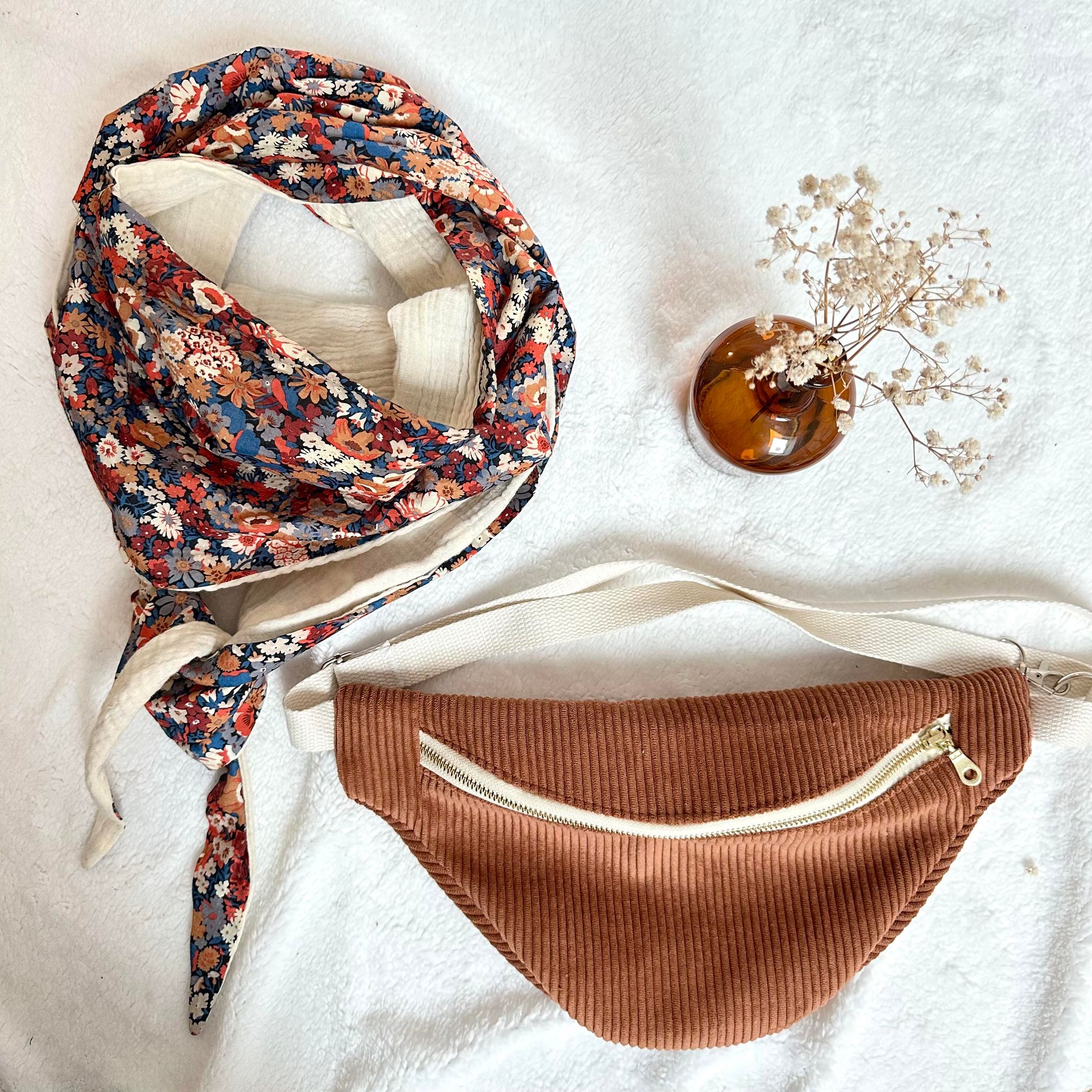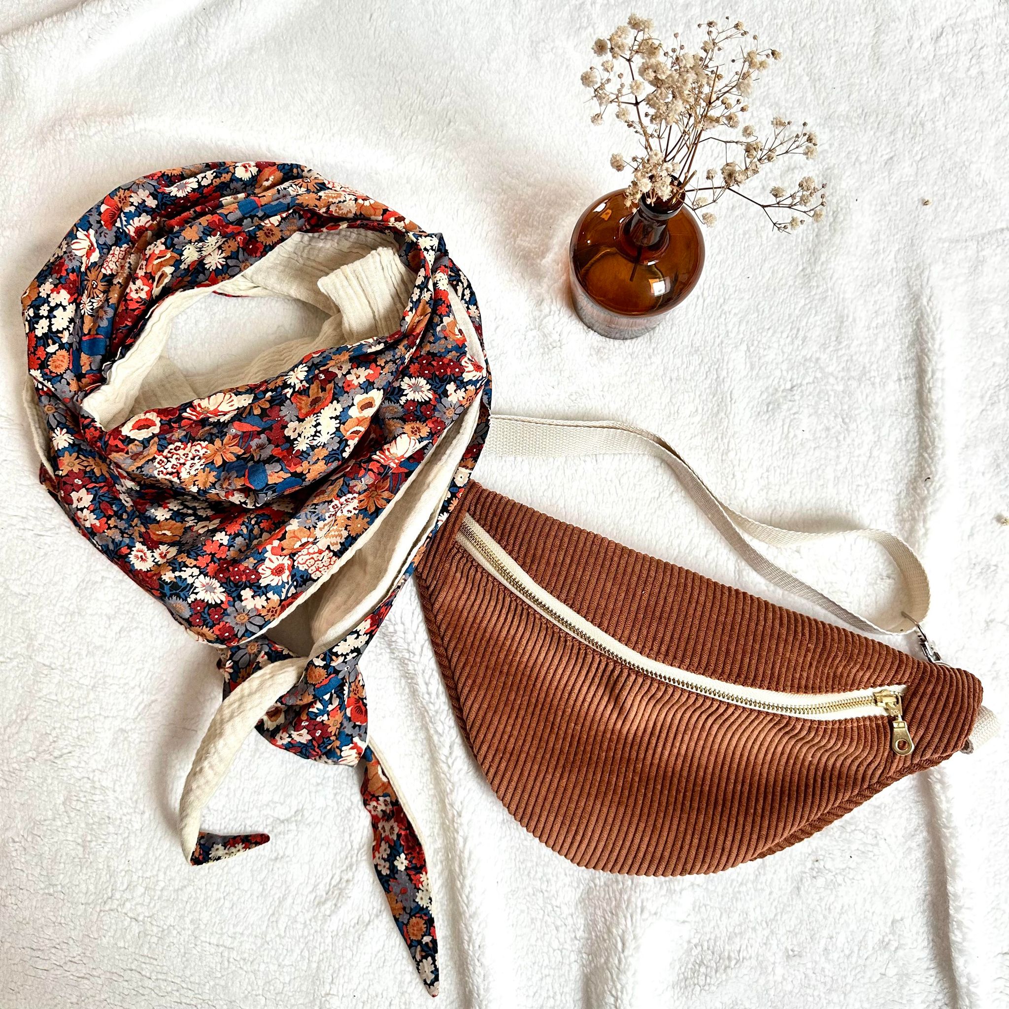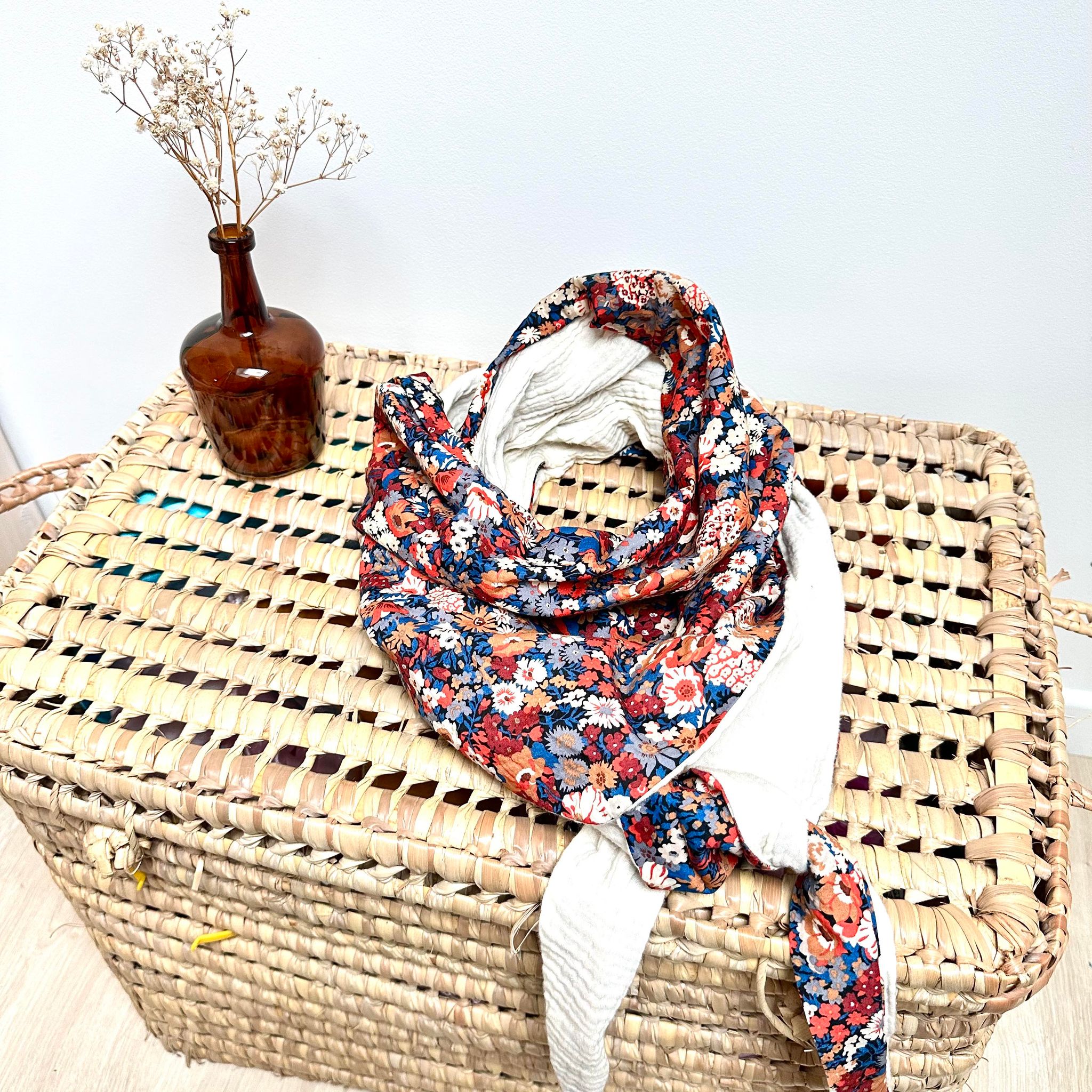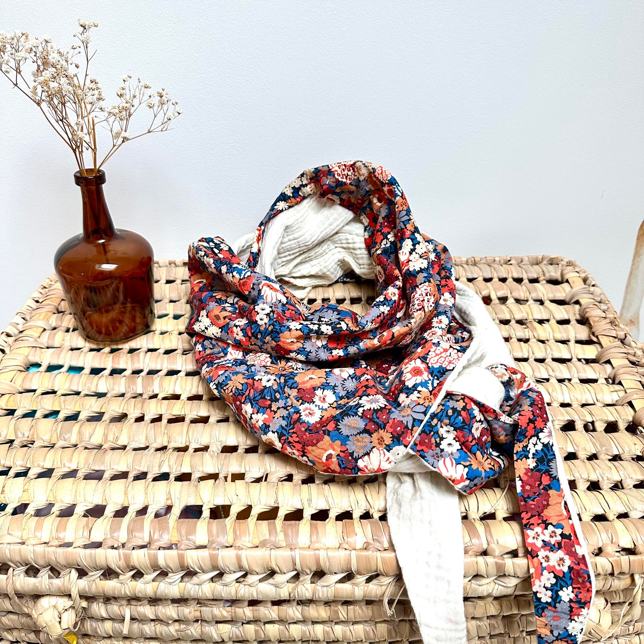 Chèche, Liberty thorpe burnt et double gaze écru