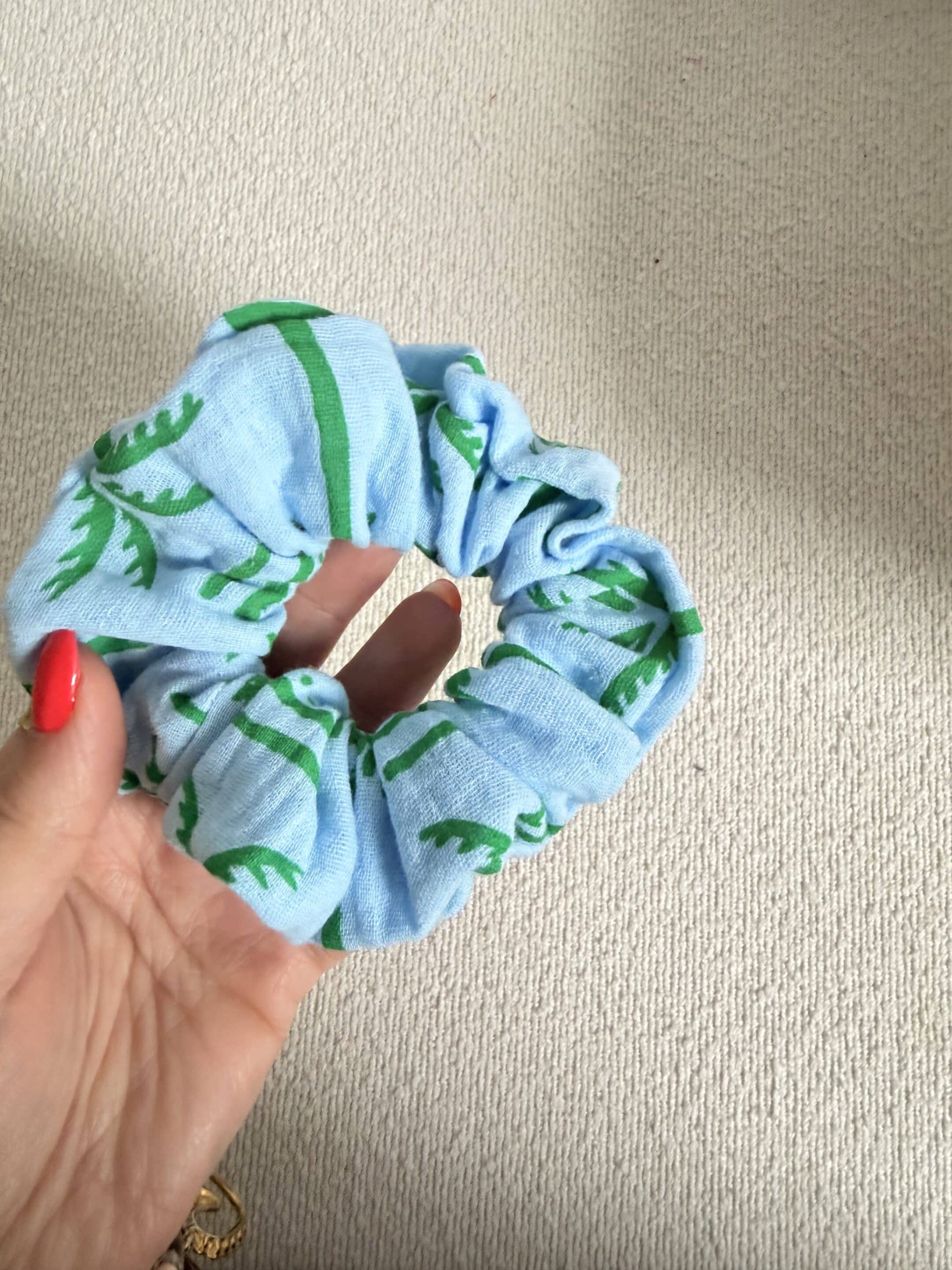 Chouchou, double gaze palmiers bleu et vert