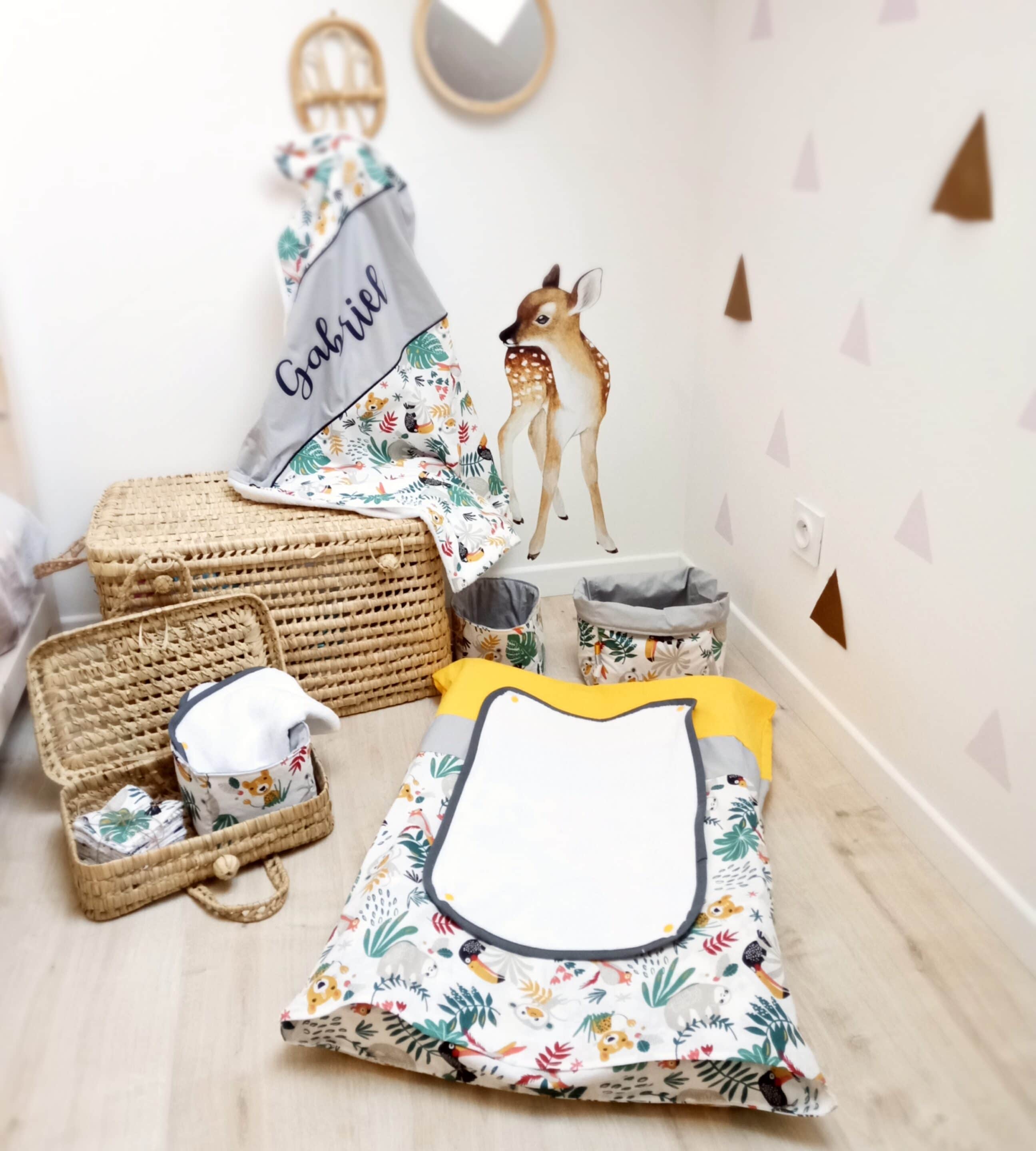 Cette petite couverture de naissance, vous permettra d’habiller son lit de cet univers que vous aimez tant, mais aussi d’en emporter un petit bout partout avec vous lors des sorties.