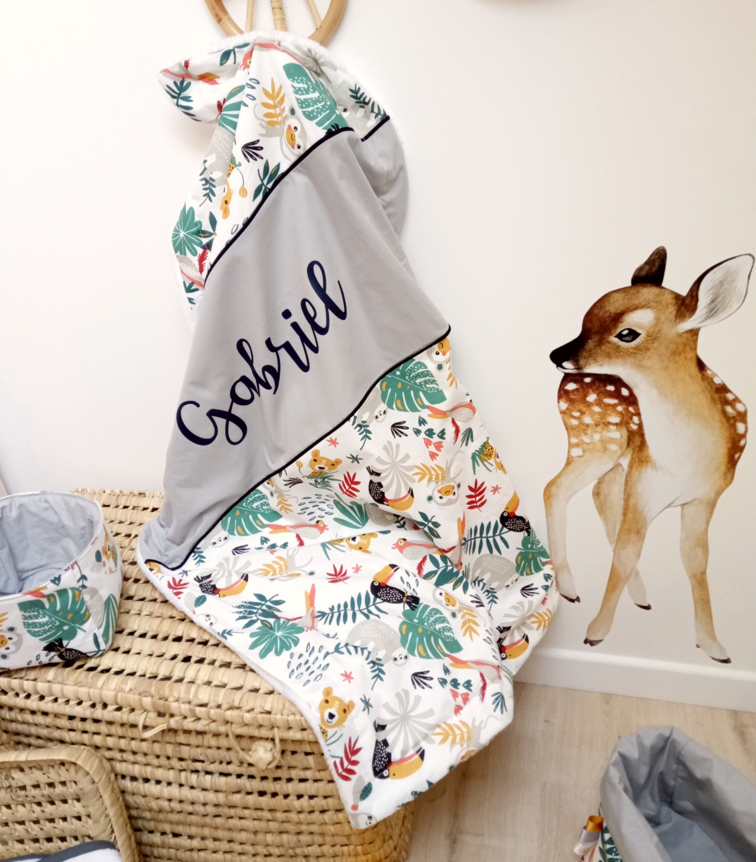 Commençons avec cette couverture qu’il pourra également emmener à l’école pour la sieste.