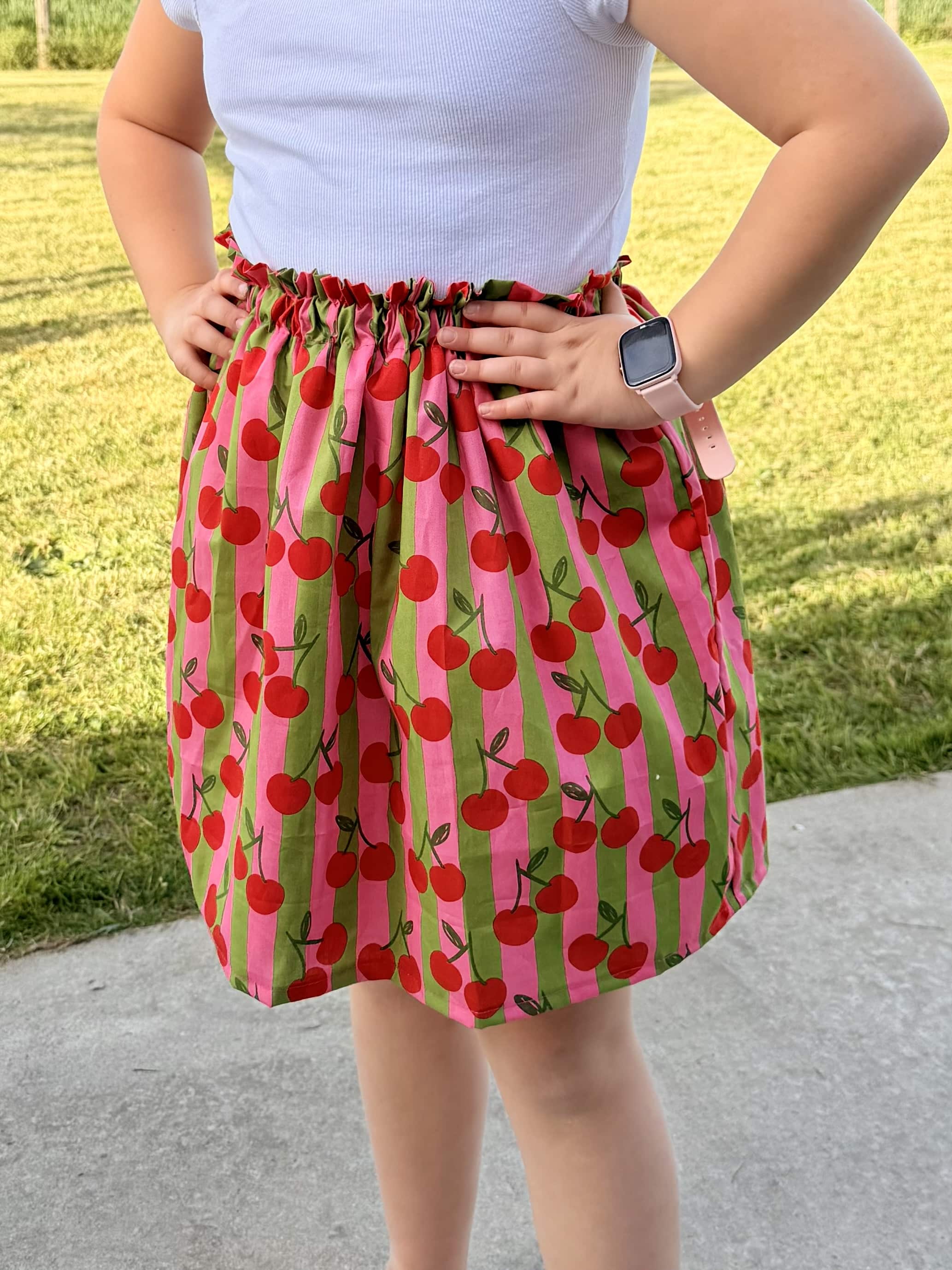 Jupette, coton cherry stripes