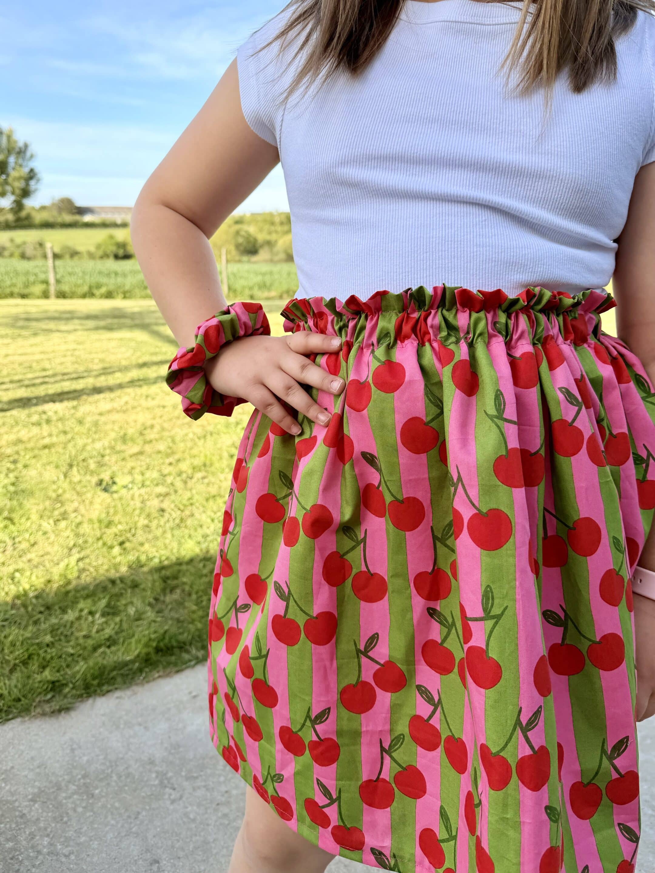 Afin que l’élastique fasse son effet et que la jupette ne glisse pas, il faut que le tour de taille de la petite fille soit plus grand que la taille de l’élastique de la jupette.