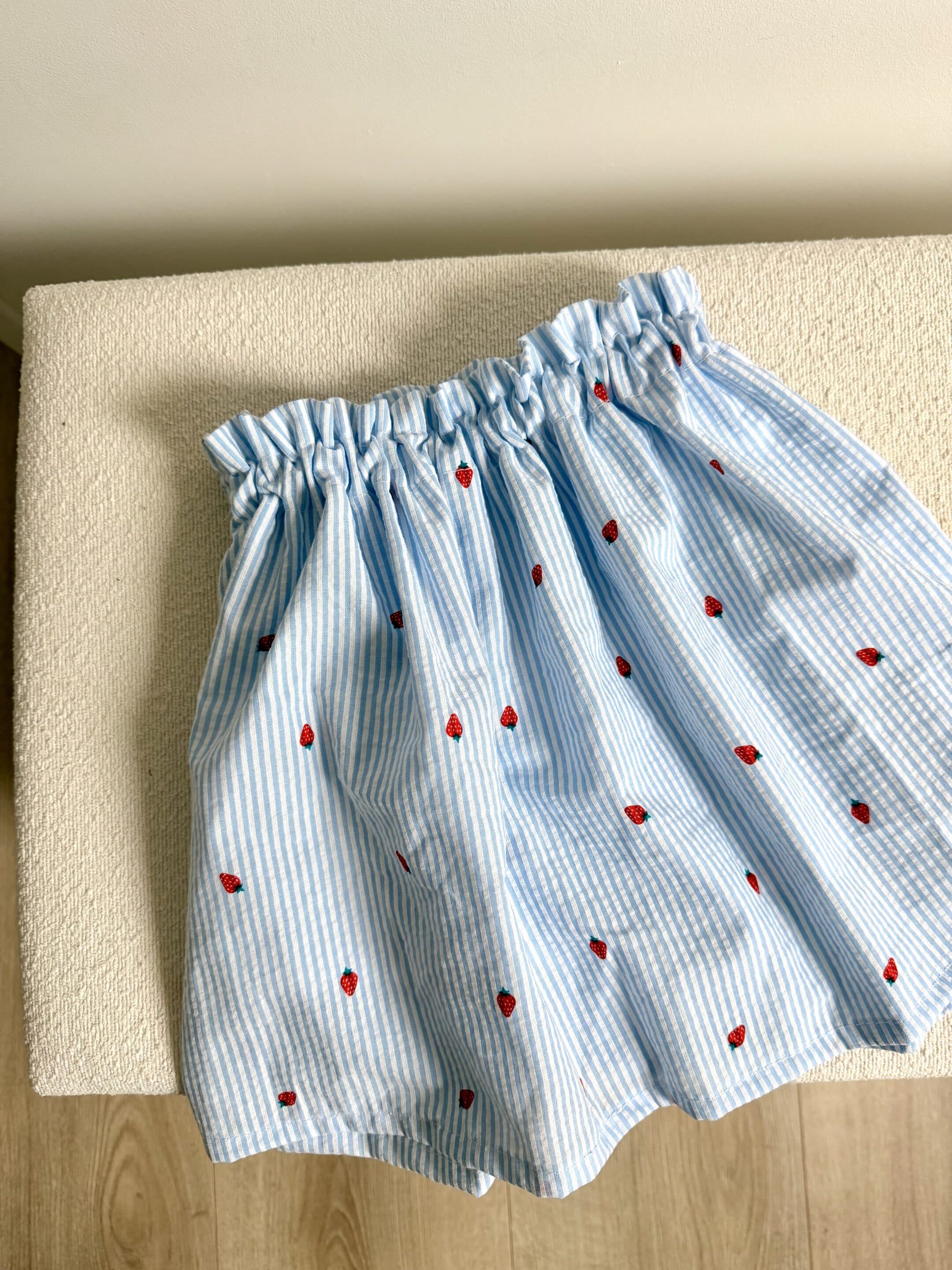 Jupe en coton élastiquée à la taille et doublée par un tissu en voile coton uni.