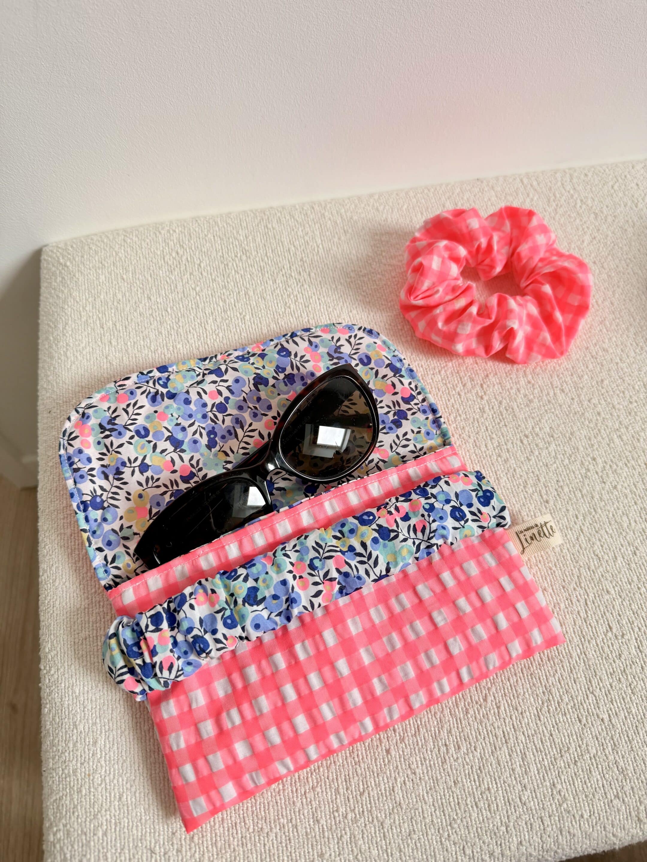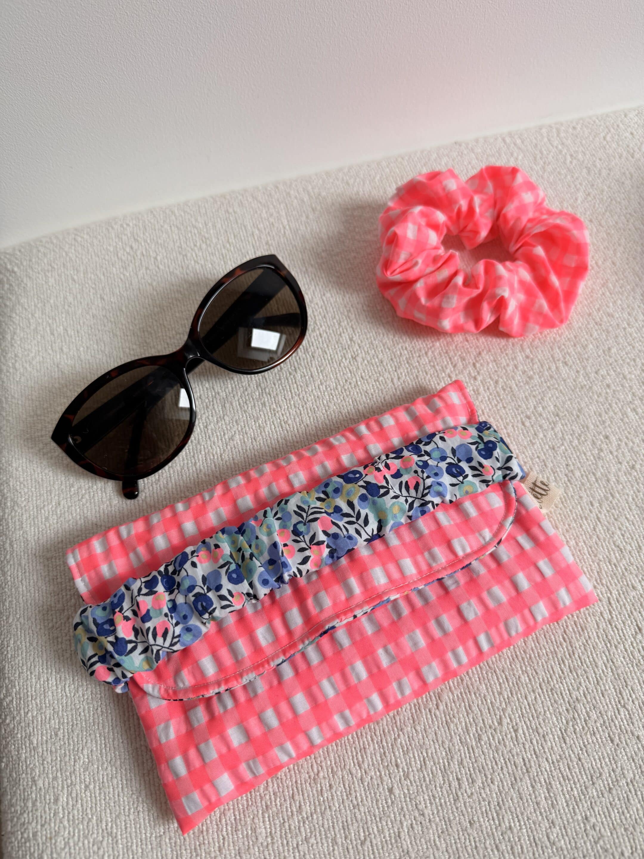 Pochette à lunettes, vichy fluo et Liberty Wiltshire fluo