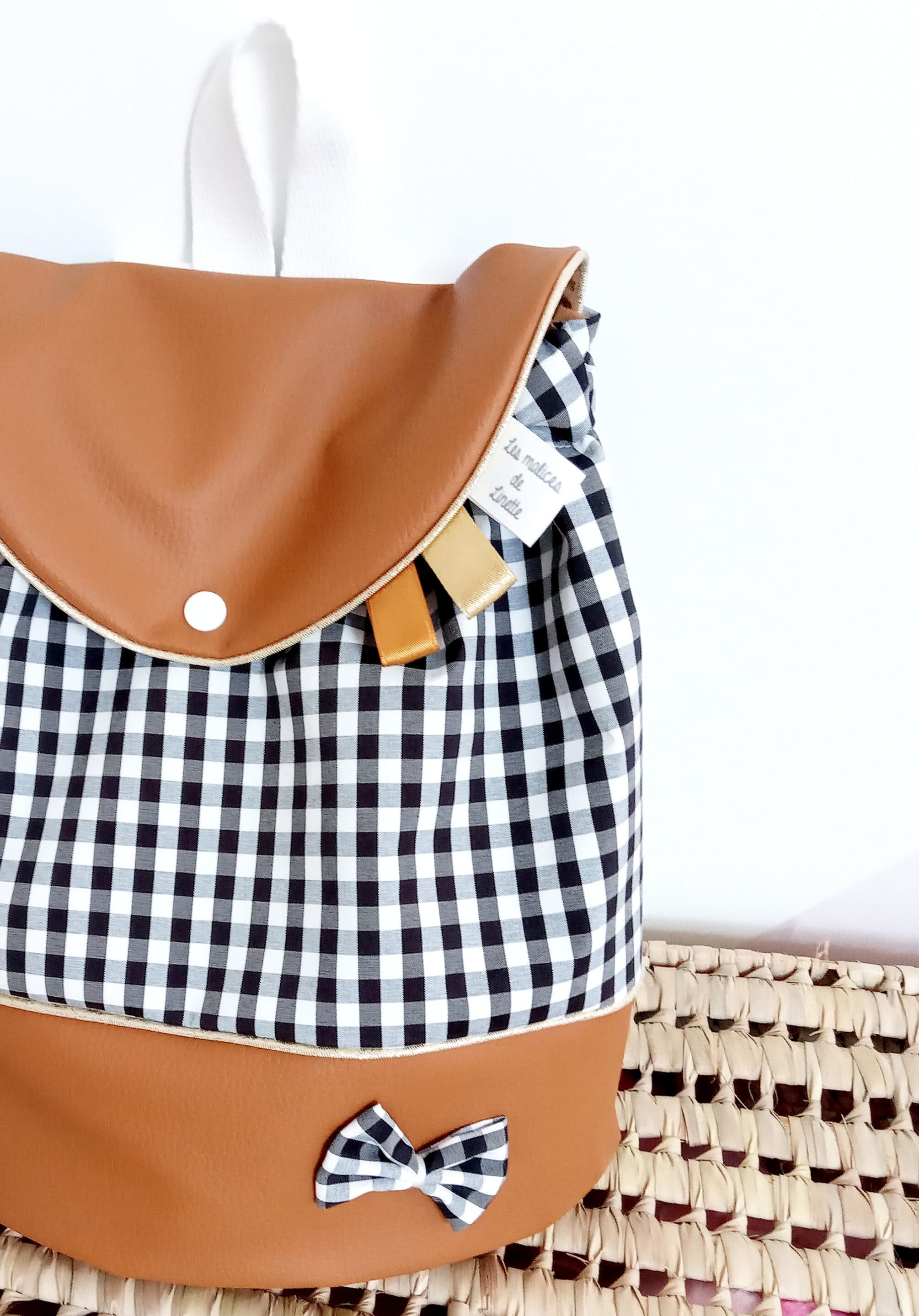 Sac à dos, simili camel et vichy noir