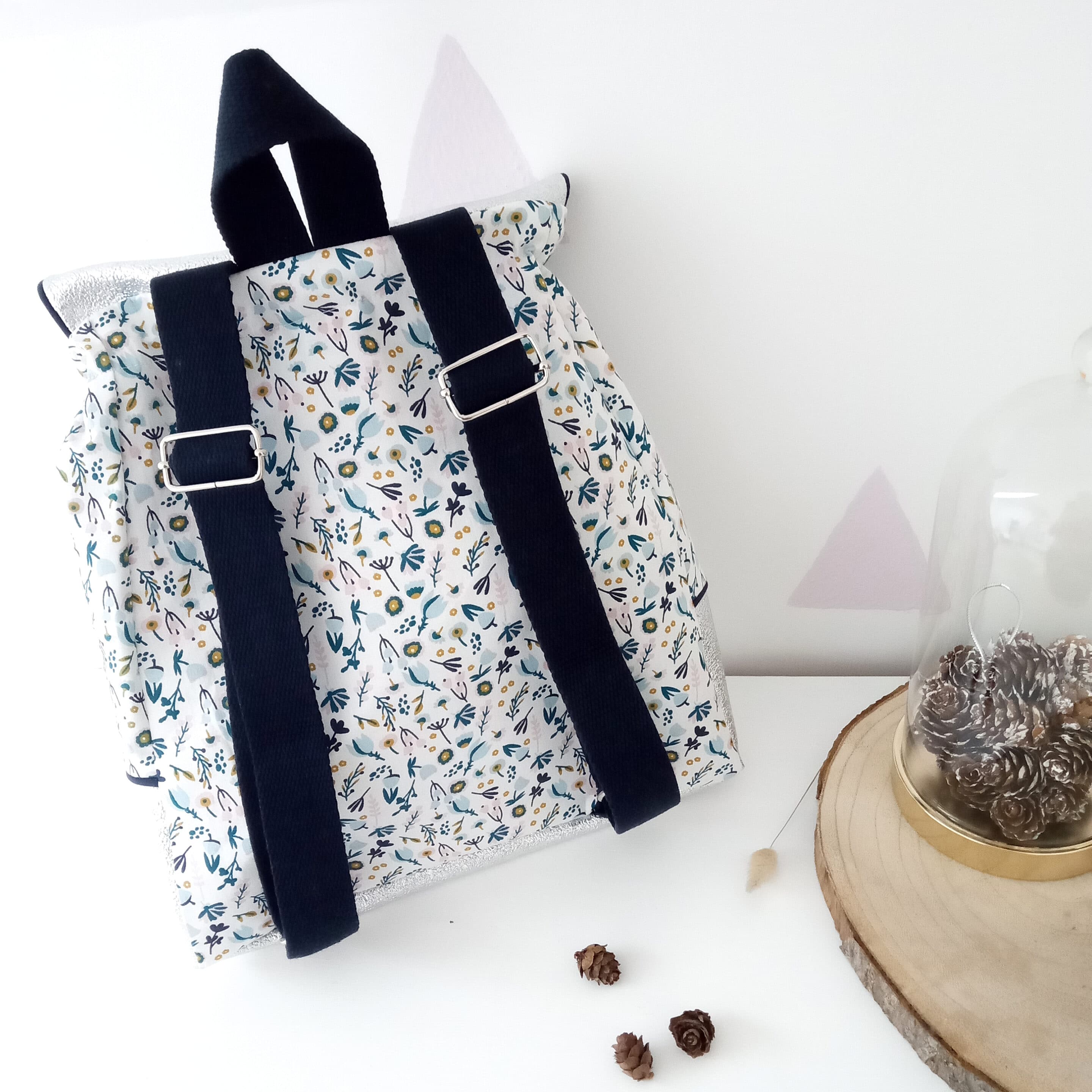 Soyez le premier à laisser votre avis sur “Sac à dos, simili martelé argent et fleuri bleu”