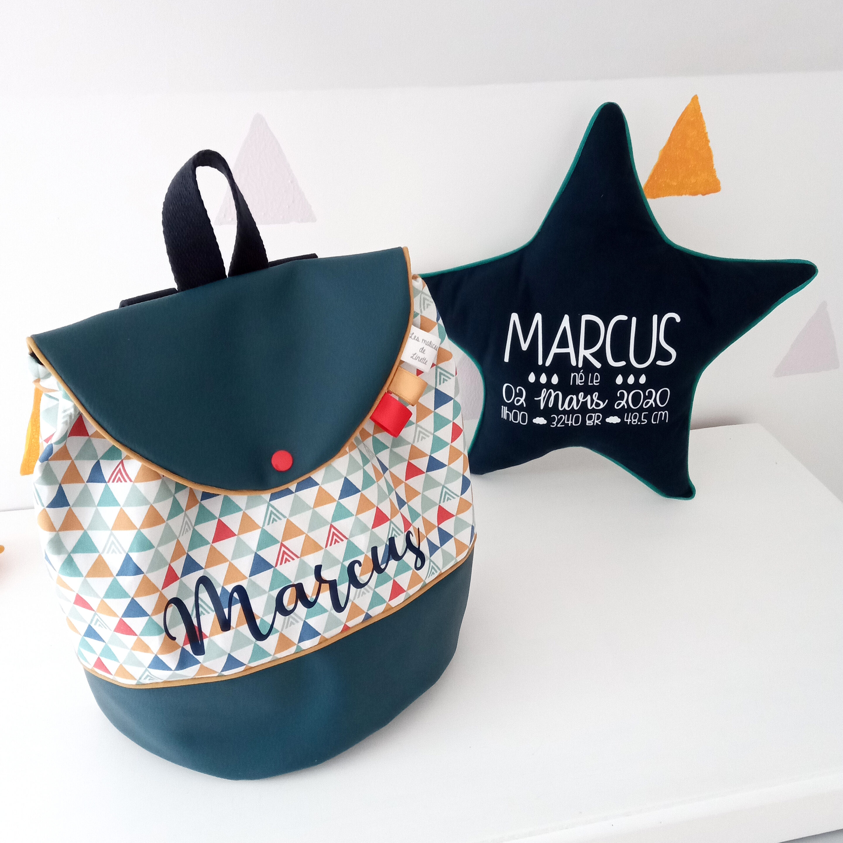 Possibilité d’ajouter le prénom de l’enfant sur le simili cuir ou le coton. Nœud en option.